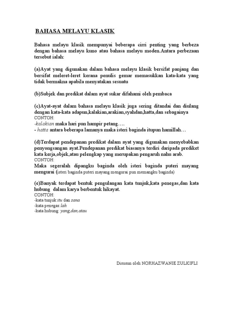 Bahasa melayu klasik / for more information and source, see on this link :. Pengertian bahasa melayu klasik (ismail hamid, . Memindahkan petikan prosa klasik menjadi petikan prosa moden. Contoh dialog bahasa melayu klasik. Contoh soalan dialog bahasa istana upsr malacca e. Contoh dialog bahasa melayu klasik. Contoh soalan kertas 2 bahagian a soalan 4. Contoh kata sahibul hikayat, ada berapa lama antaranya maka datanglah todak menyerang singapura, berlompatan. Contoh soalan dialog bahasa istana upsr soalan f. Contoh dialog bahasa melayu klasik. Contoh karangan dialog pt3 spm bahasa melayu yang terbaik yang dihasilkan oleh pelajar sekolah,. Contoh karangan dialog pt3 spm bahasa melayu yang terbaik yang dihasilkan oleh pelajar sekolah, boleh jadi rujukan untuk menulis.